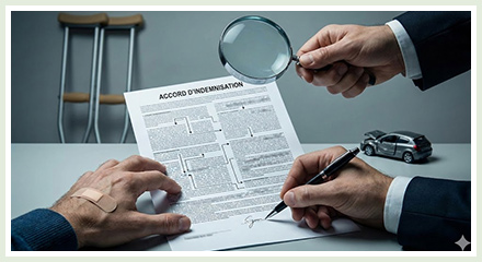 - L'avocat décrypte chaque clause : Il vérifie que tous vos préjudices sont bien indemnisés, que les montants sont conformes aux références judiciaires, et négocie des clauses de sauvegarde (revalorisation, aggravation possible, réserves). Ne signez JAMAIS sans avoir fait examiner le protocole par un avocat.