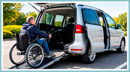- Les victimes de paraplégie ou tétraplégie — qui nécessitent un véhicule avec rampe, abaissement du plancher, commandes manuelles intégrales ou place passager aménagée pour fauteuil.