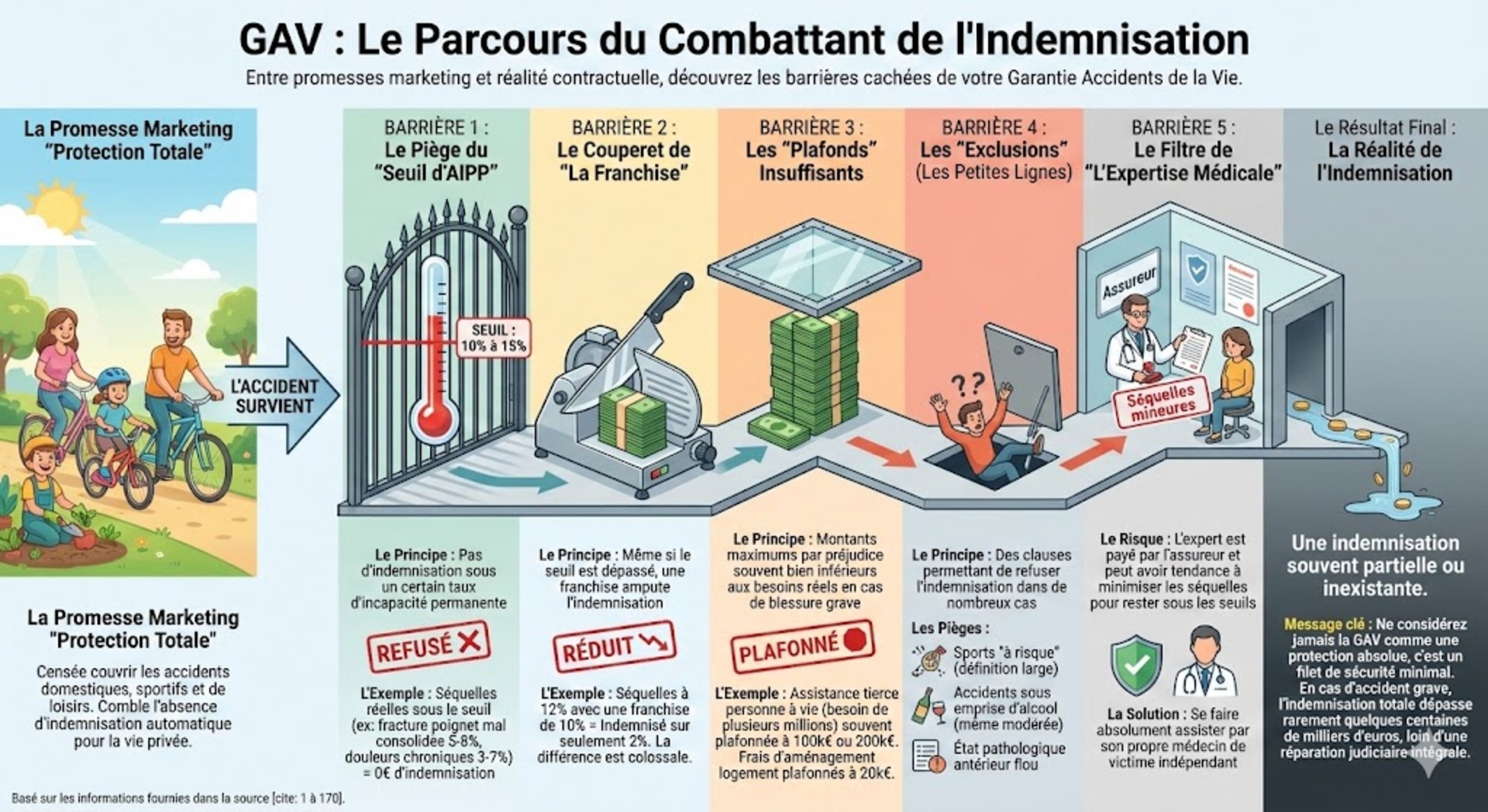 Concrètement, qu'est-ce que cela signifie ? Si vous subissez un accident domestique qui vous laisse des séquelles évaluées à 8% d'AIPP par le médecin expert, votre assureur GAV peut légalement refuser de vous verser la moindre indemnisation. Vous aurez payé vos cotisations pendant des années pour rien.
